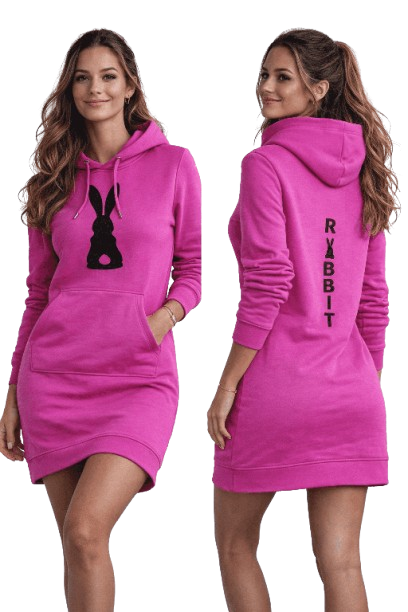 Rabbit hoodie haljina u pink boji spaja udobnost i moderan streetwear stil.