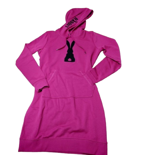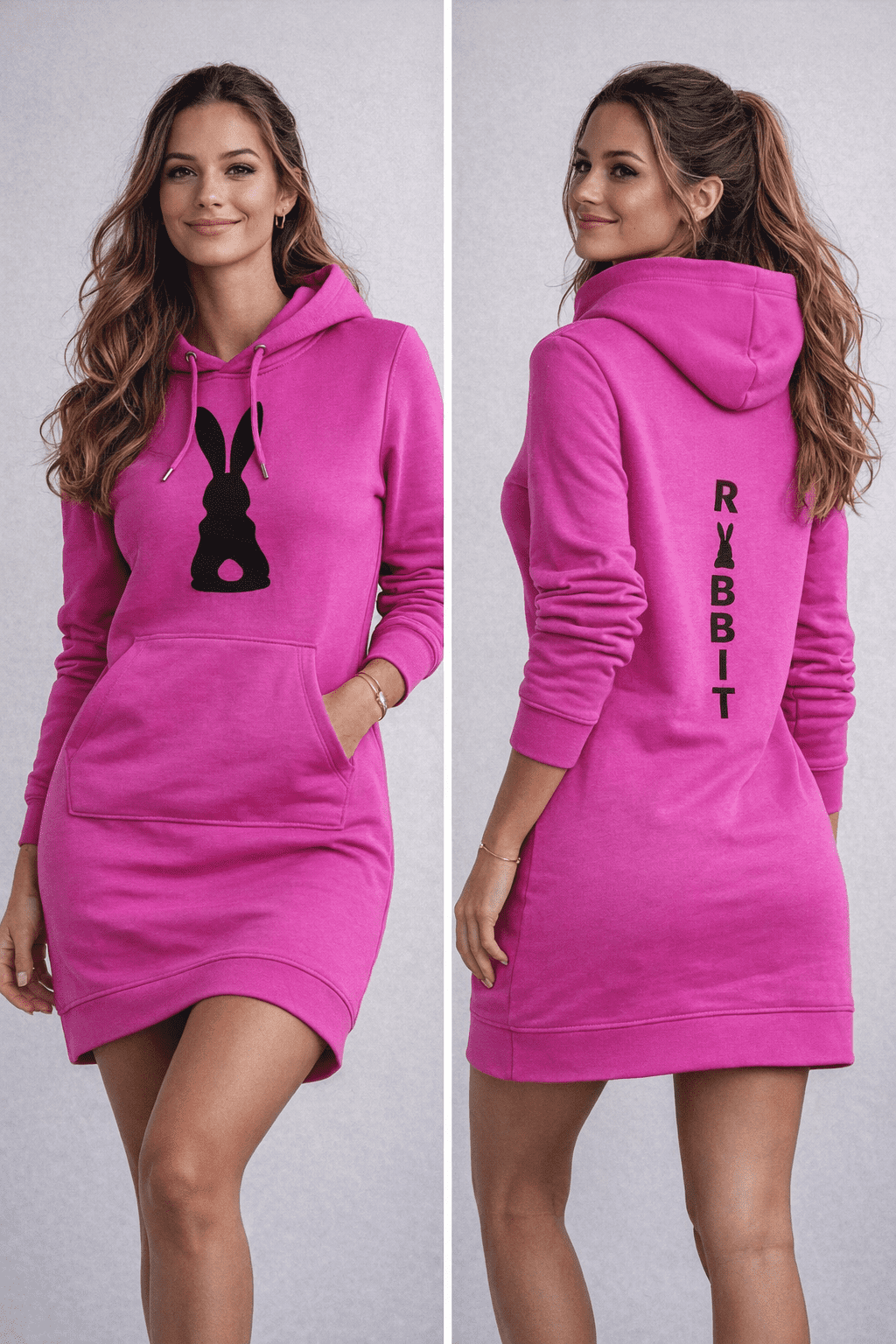 Udobna i moderna hoodie haljina s prepoznatljivim Rabbit printom. Idealna za svakodnevni casual look, savršena u kombinaciji s tenisicama ili čizmama.